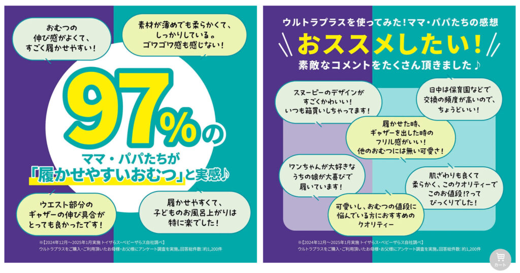 価格は流石に「ウルトラプラス」が勝りますが、他はさすがに「パンパース」が勝るなという印象です。